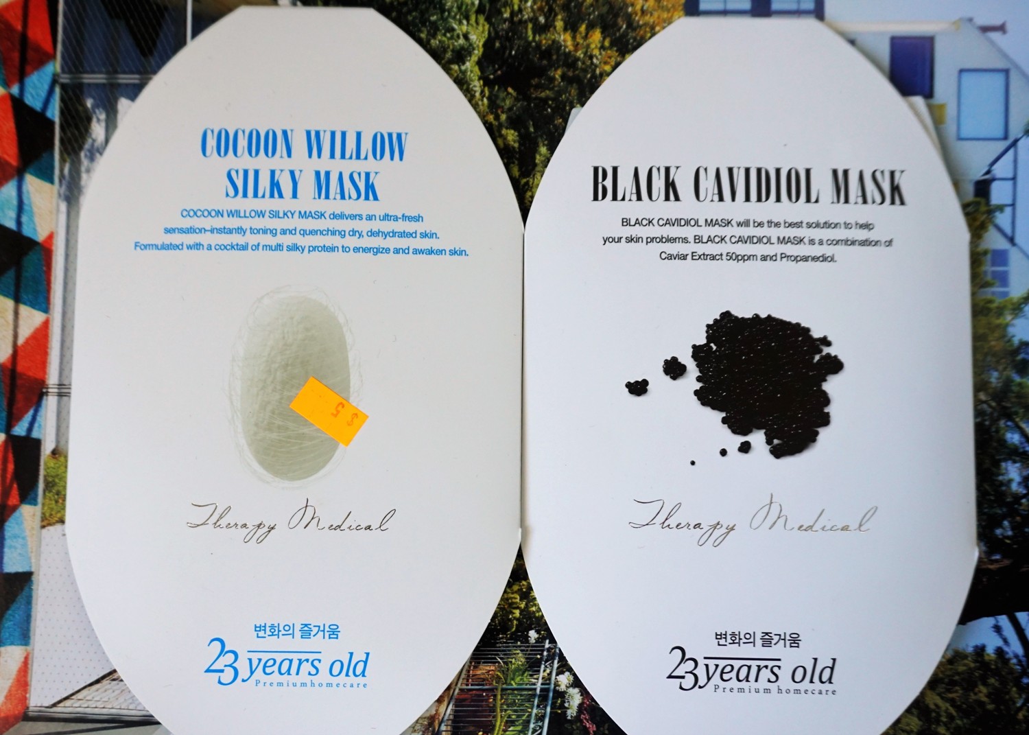 The 23 Years Old Masks are likely the weirdest masks I have tried. I think I feel more creepy in these than the Daiso Silicone mask. I bought these because they were fancy-looking and fancy-sounding. They were on the expensive side for a sheet mask at $5 a pop (I bought them in NYC), but the packaging totally drew me in. I was, however, surprised to see what it looked like… just keep scrolling 👽