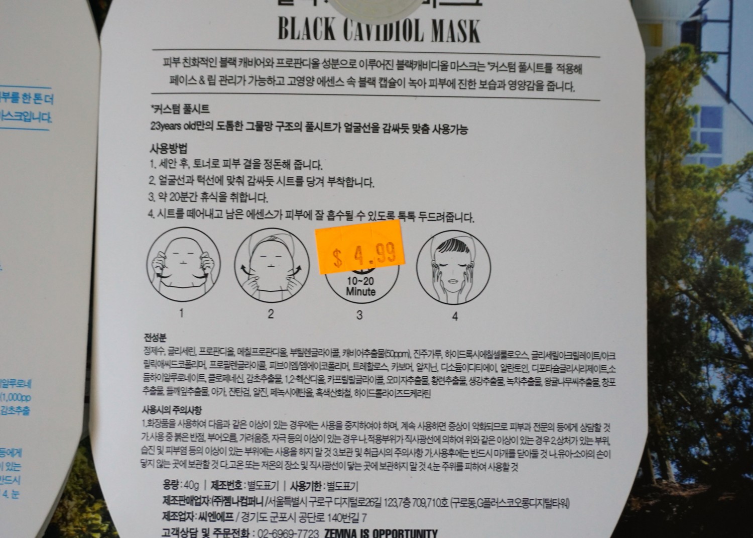 Unlike the Black Cavidiol Mask, I left this one on for 20 min but felt like it was drying out after 10. It still felt moist to the touch, though. While I like that there was fabric that extended to under the chin, it was flappy the entire time. I experienced this issue with and without the Daiso cover. My face felt smooth after use but not particularly moisturized. I didn’t notice any special brightening powers either.