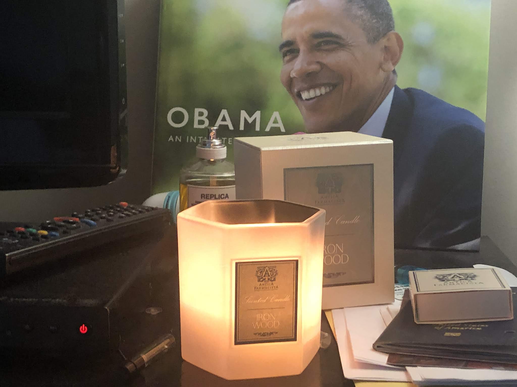 There was something about the black soot on the white candle called Iron Wood that brought me great pleasure on this dark and gloomy morning. In the background is my current favorite fragrance, Jazz Club by Maison Margiela. I bought that book of photographs taken by the Chief White House photographer Pete Souza many moons ago from President Obama’s time in office and have yet to get through the whole thing, but it makes me happy looking at his face. The generous book of matches that came with the candle gives the space a sophisticated touch. Like, “yeah, I use long-necked matches to light candles, what of it?” The expired passport that has taken me on some of the best adventures of my life. The old-as-dirt TV and DVD player that have been my Day 1’s since day one! I left the stack of papers in the photo, well, because that’s real life for me. It seems like there’s always stacks of papers (and empty perfume samples) somewhere.