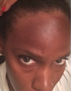 When I woke up this morning, I knew something was wrong. My forehead was very dark and leather-feeling to the touch in that one spot near my hairline. You may be able to see the bumps there in the photos below; that’s where it felt rough. After work today, my shoulders started itching again. By the time I got home, I had either hives or the itchies pretty much everywhere I had a tan: my shoulders, upper back, and even my chest. This, my friends, is sun poisoning.
