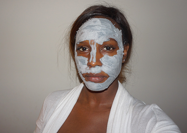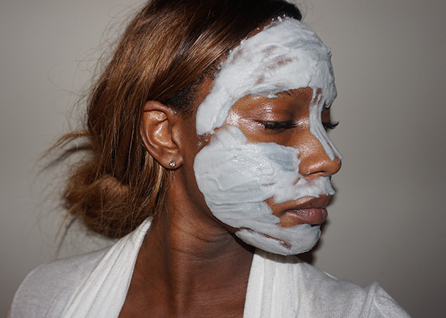 After exposing the mask to air, you can hear the faint sounds of carbonation. That lit a fire under my bum to get this thing spread on my face. The mask spreads very evenly over the face with the spatula, and applying it is my favorite part of the entire process.