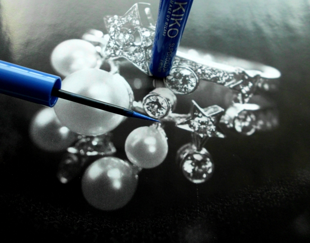 KIKO Super Colour Eyeliner in Blue Majorelle is described as a “water resistant colour liquid eyeliner” and the color on me is a very bright true blue. The color is applied using a thin, felt tip brush to customize your liner. KIKO says: