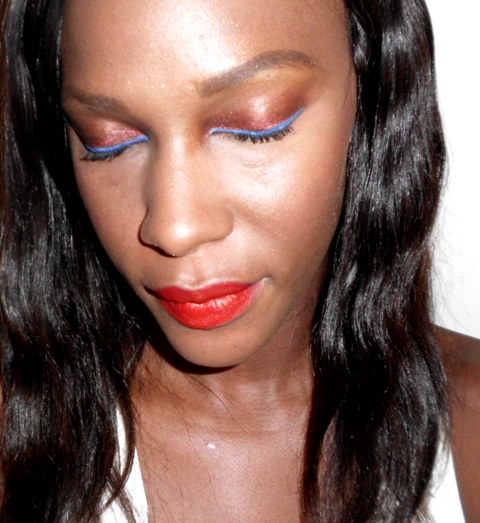 I love how bright the color is and it definitely gives a major pop to my brown eyes. I decided to use this eyeliner for Independence Day festivities and I’m really pleased with the look I came up with.