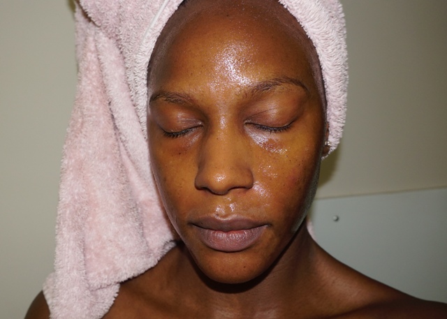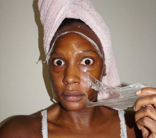 On to the mask! The mask is quite easy to apply; it has the texture of honey and no scent to it. It goes on wet and takes about 10 minutes to dry down completely. When it’s dry, you will notice the glossiness of the mask; that means it’s time to peel it off.