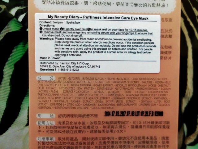 Of course only temporarily, but hey, I’ll take what I can get! This here is the My Beauty Diary Puffiness Intensive Care Eye Mask. I put these in the refrigerator the night before. The next morning, I used this right after washing my face and before using my Alpha Hydrox AHA Souffle. I skipped my Mizon Snail Repair Eye Cream until after I used the mask. You get 5 individual masks in the box. I was very surprised at the results and was grinning from ear to ear. I almost started to believe people who told me I am crazy to be considering Juvederm for my bags.