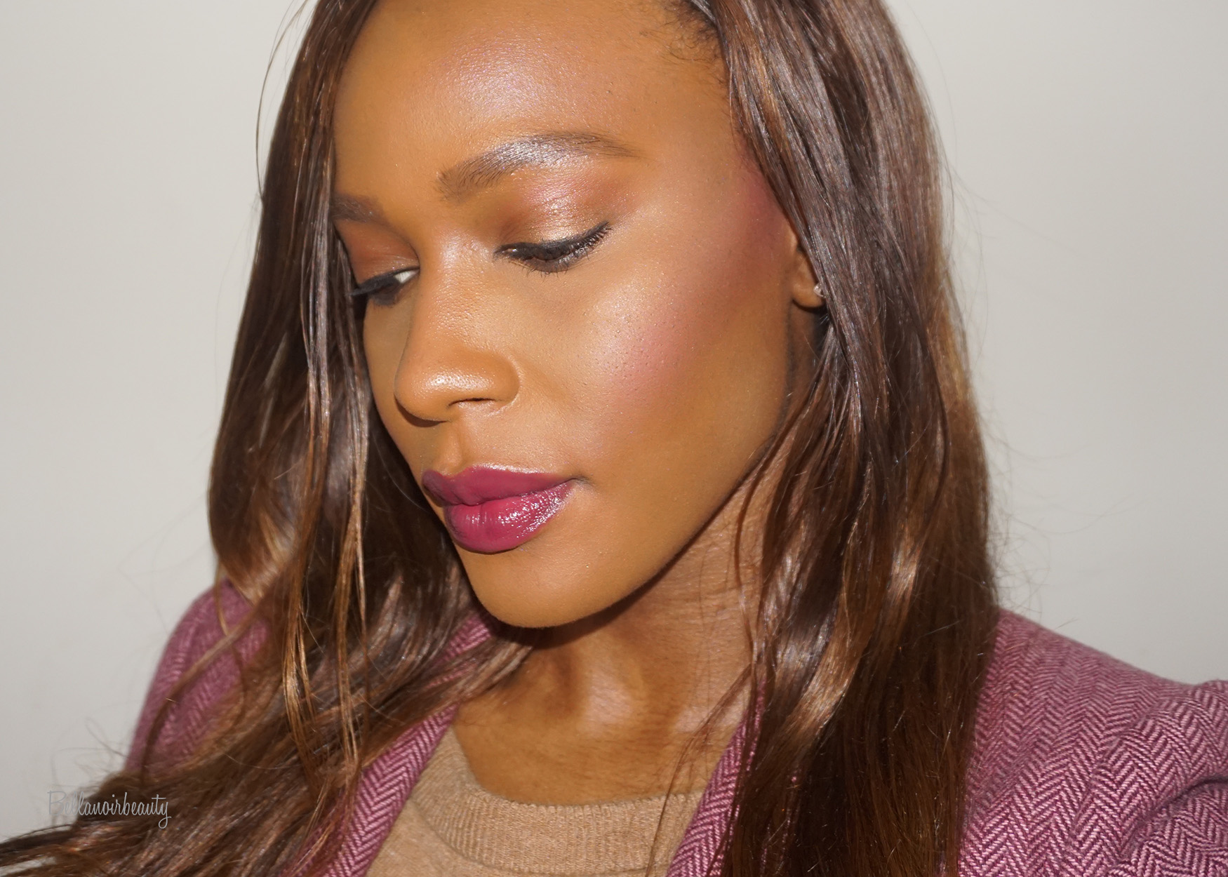 | Shade II: soft pink shimmer; Also wearing Make Up For Ever Full Cover Concealer; Mac Skinfinish Natural Foundation; Pat McGrath Copper 005 Cream on lids; L’Oreal x Balmain Lipstick Confidence; Laura Geller Baked Mono Blush Malibu |