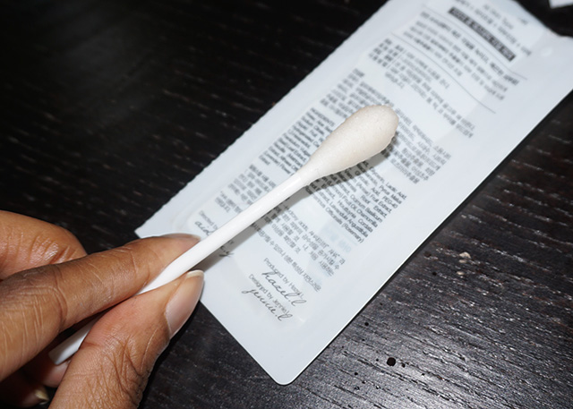 The package actually contains a huge AHA Milkpeel Swab that you swipe over your face before you move on to the mask. The swab contains some of my favorite ingredients (Aloe Barbadensis Leaf Extract, Lactic Acid) and tingles a bit after swiping. The sheet mask was drenched in essence, and fit my face almost perfectly; I could have used a bit more fabric for my forehead. The fabric was stretchy so I could pull the mask all the way over the sides of my face.