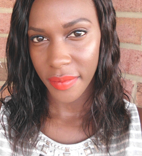 The Matte Revolution lipstick in 1975 Red ($32.00) was a bit of a surprise for me. It’s described as a “sunset red” and comes off on me as very orange. And it is bright! I wore this look to work; two people told me they loved this lip color… well actually three but the third said although they liked it, it was different in an aggressive way. I generally wear bright lipsticks to work, so this wasn’t an uncommon circumstance. Either way, I thought it would be more like my Kat Von D Everlasting Liquid Lipstick in Outlaw, but it’s definitely got more orange undertones.