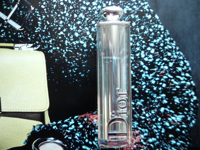 On to the packaging… As you can see from the pictures below, the actual packaging of the product is different from what you see in the display. The ball of color is actually the same silver color as the rest of the lipstick, like the fake one in the top left corner of the display photo. The casing is a beautiful heavy plastic (?) material — it looks like metal, giving it a very futuristic look. The actual applicator might just be metal, I’m not sure but as you are capping it, there is a magnetic force that does all the work for you. So all you need to do is slide the lipstick in and a magnet makes sure it’s closed; that’s really cool!