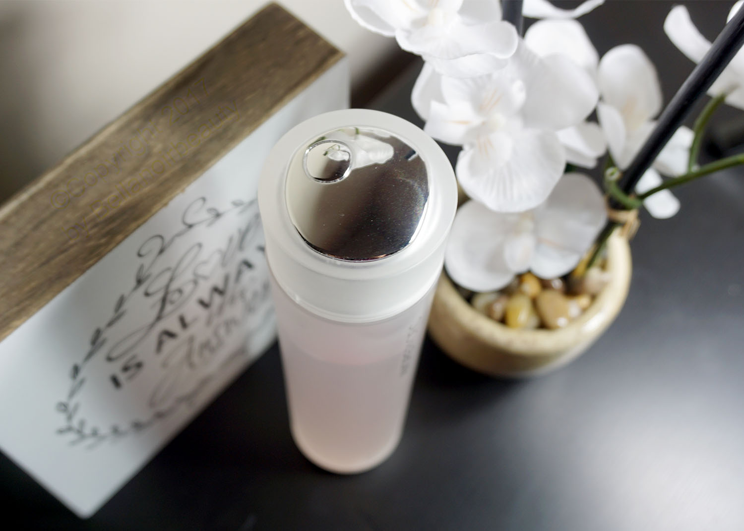 I use this toner with my Muji cotton puffs. I apply a pretty liberal amount on the puff and pat it gently into my skin. If my face doesn’t feel saturated enough, I repeat with another cotton pad.