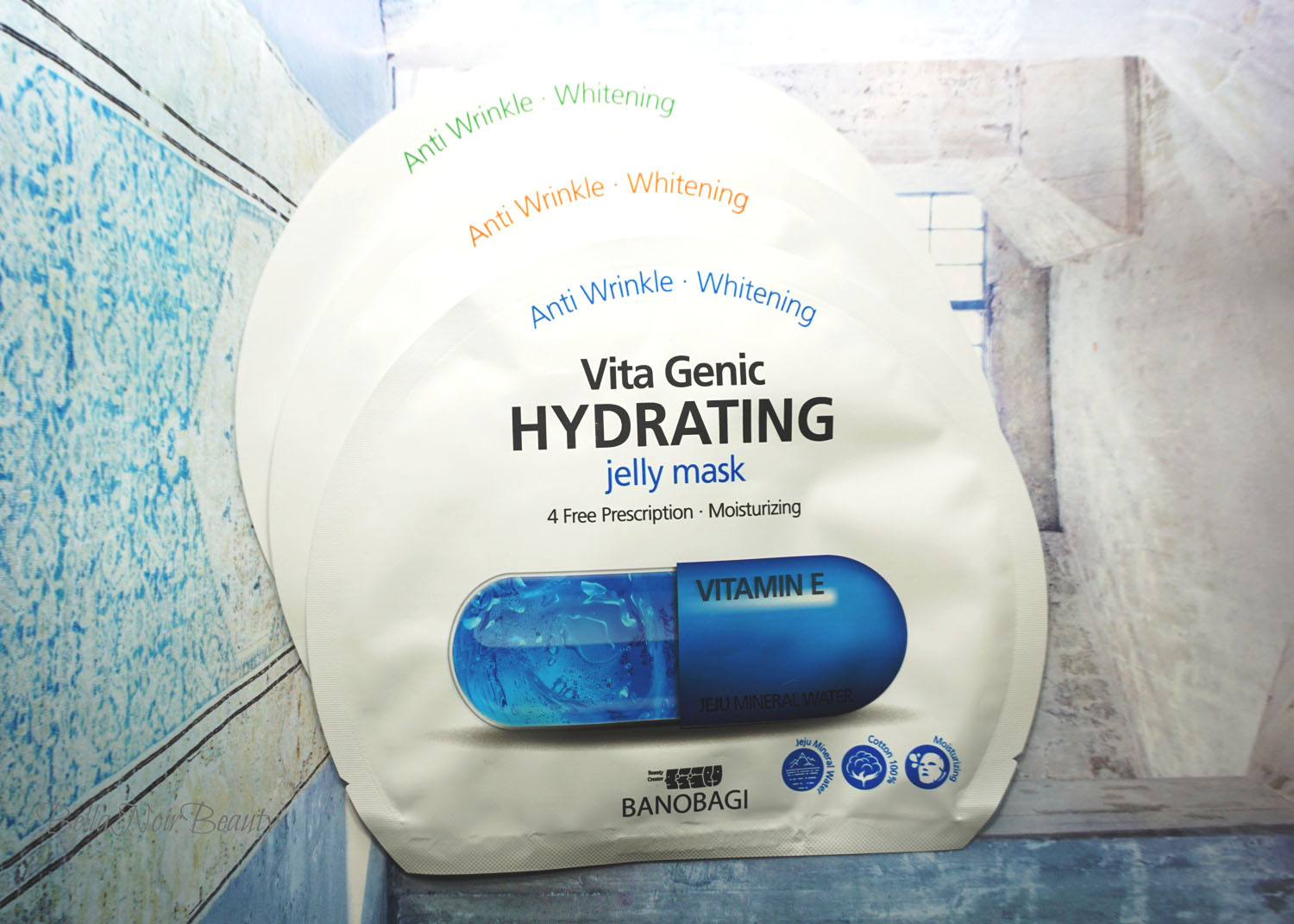 The Vitamin B Calm & Balance mask is supposed to soothe and moisturize. It has aloe in it, so it would be a great mask if you spent a lot of time in the sun. The Vitamin C Tone Up mask is supposed to moisturize and brighten, and the Vitamin E moisturizing mask is supposed to moisturize.
