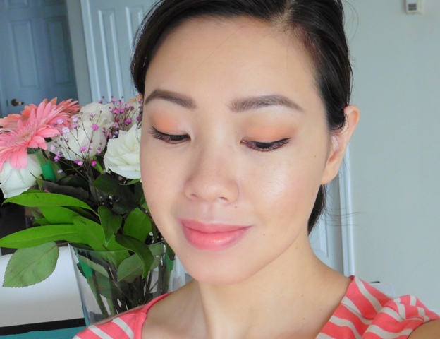 I started out using my fingers to apply, but found I got the best color payoff and consistency when I used the brush that came along with the shadow. I also needed to use a powder shadow on the corners and my crease for definition.