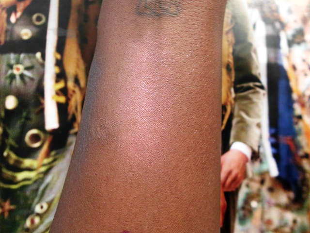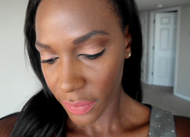That was not the case for Angela — it was definitely orange on her. She used her fingers to apply several layers and added some matte taupe powder shadow along the edges for some definition. With the help of Urban Decay’s primer potion in Enigma, it lasted all day on her, and by all day I mean 12+ hours.