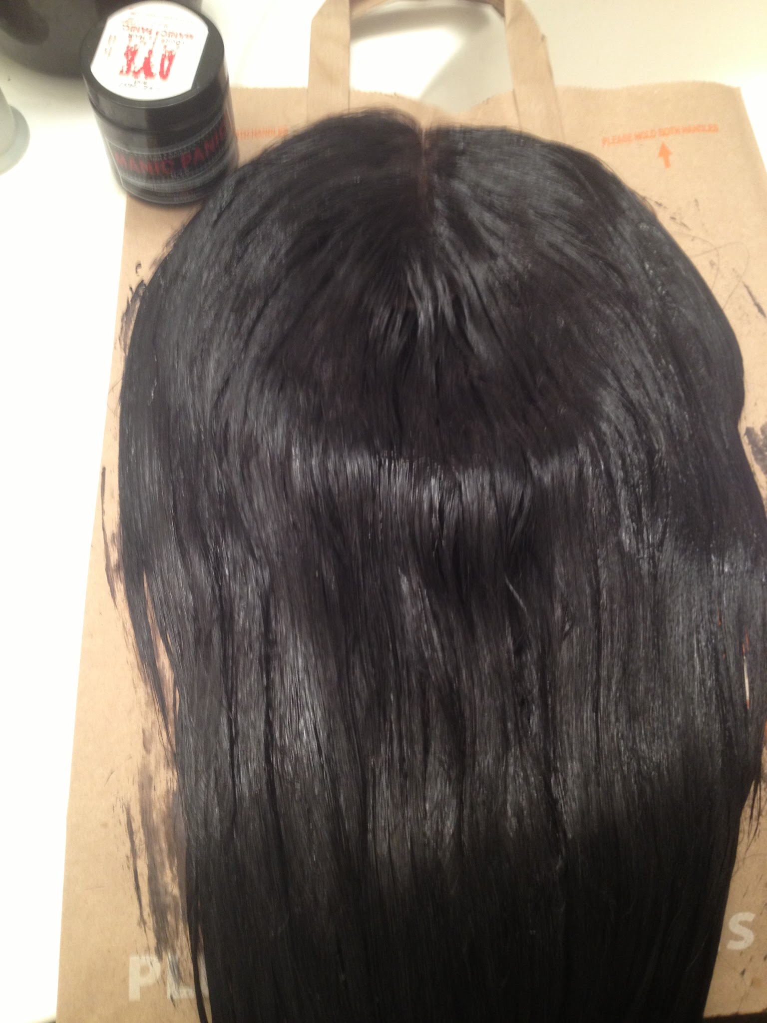 So the closure was a lot lighter than the u-part wig, as I had dyed it long before (jet black). So after sewing the closure on to the wig, I dyed it with some semi-permanent hair color I had from Manic in the color Raven. I left it on for 35-40 minutes. I thought it would have come out darker but it is very much blendable with the wig now. BTW I purchased the closure from Hairsisters. It was $35.99