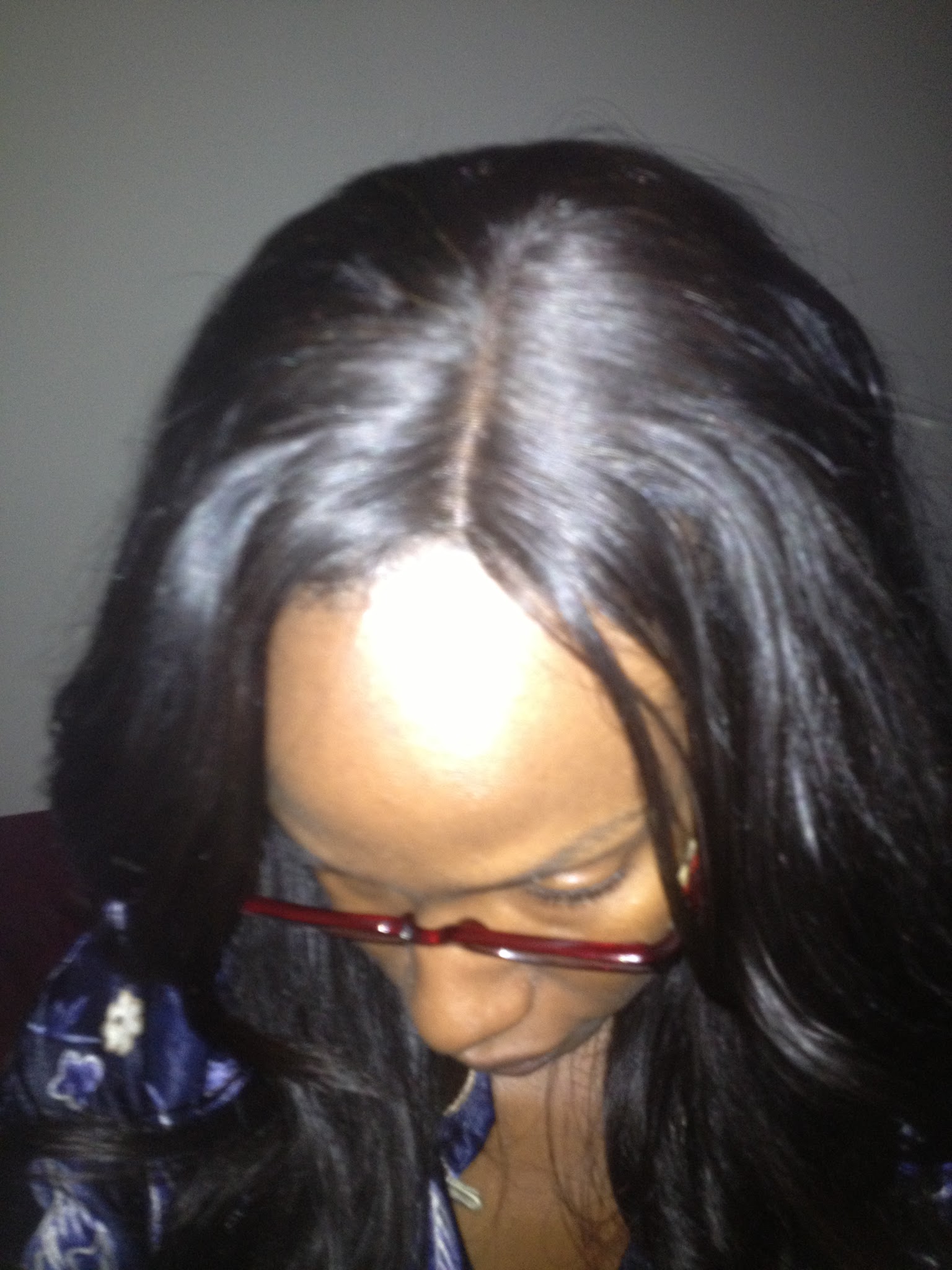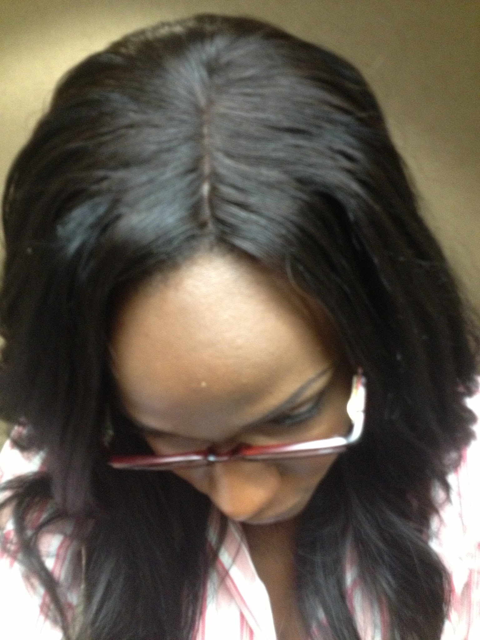 When all is said and done I can say that I am satisfied with the overall outcome. As far as the closure ITSELF, not so much. But it doesn’t have anything to do with the closure itself. I could have made this closure look a bit more realistic by tweezing and such, but after 3 HOURS, I just could not! I had HAD IT with this hair! All I wanted to do was get it on my head and go to bed. I ended up blowdrying it which turned out fine. I did wash it with shampoo and conditioner, then put some more conditioner on it and put it in a plastic bag and put it in the microwave for a minute and a half. It was so soft when I was washing it out. After blowdrying, I commenced with the sewing. I had already braided my hair… I suggest getting bulk hair. My hair was relaxed last month and it somewhat straight, although my edges have started to curl up again.