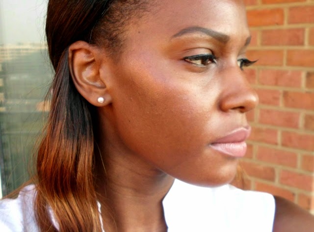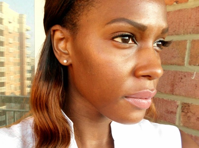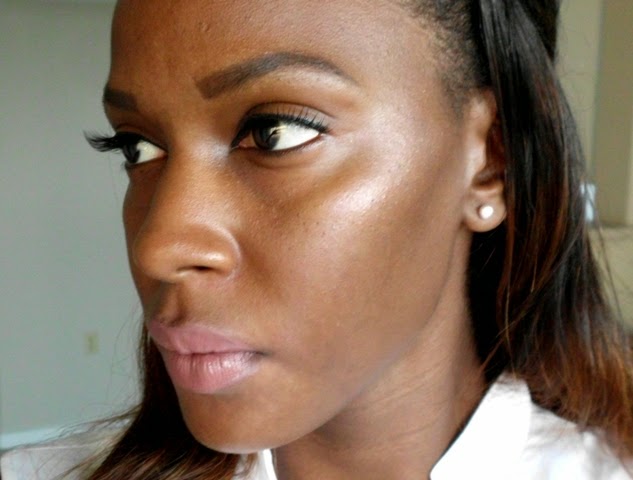 I am wearing a very light dusting of Nars Almeria Blush (limited edition) in the photos below. The highlighter settles on the skin a bit different from other highlighters. You can tell from the flash swatch that the particles are larger than your average highlighting powder. I’ve read some people say that it resembles glitter, but I can assure you it does not (I dislike glitter unless it’s on my nails; and even then…). However, it certainly stays on your face like glitter; that is, until you wipe it off either with your hand (it’s removed easily) or during cleansing. I applied it at 7:30 a.m. and it we still going strong well past 8:00 p.m. when I cleaned my face.
