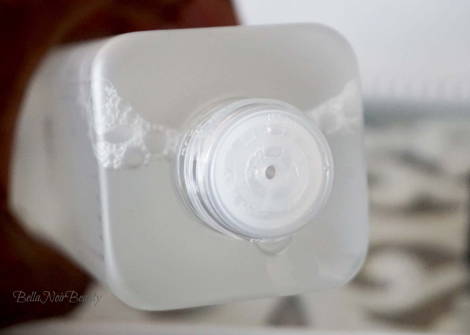 The beauty water has a consistency of actual water and I pour it on a cotton pad and swipe it over my entire face. I don’t use this for brightening or exfoliation as the brand claims it provides, just because my skin is used to way more intense ingredients for that purpose and I do not expect to see noticeable changes in brightening or texture with this product.