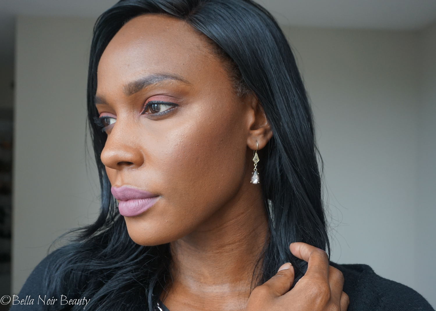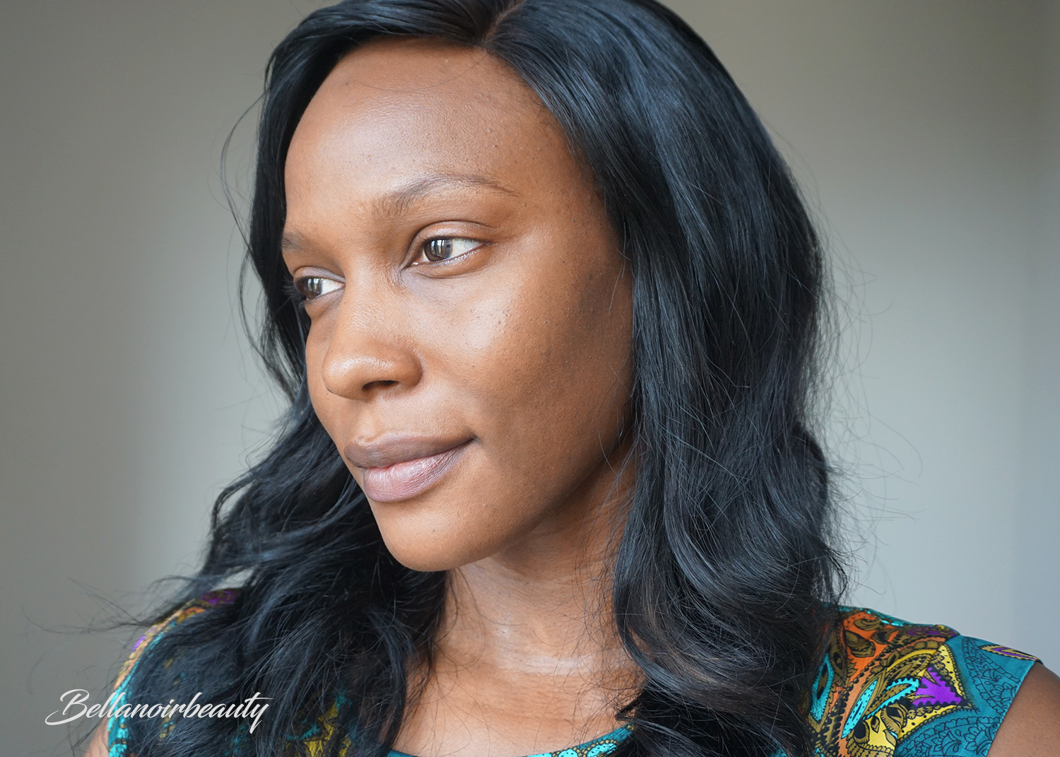 The brush is too dense which results in ‘skipping.’ By that I mean the powder is noticeably left on my skin in patches. This makes applying over makeup slightly problematic as well. I remedy this by going over my face with setting powder, as seen in the last three photos above. It becomes more difficult when I am wearing makeup and would need to do this when reapplying as well. Admittedly, I did have higher expectations for this product.