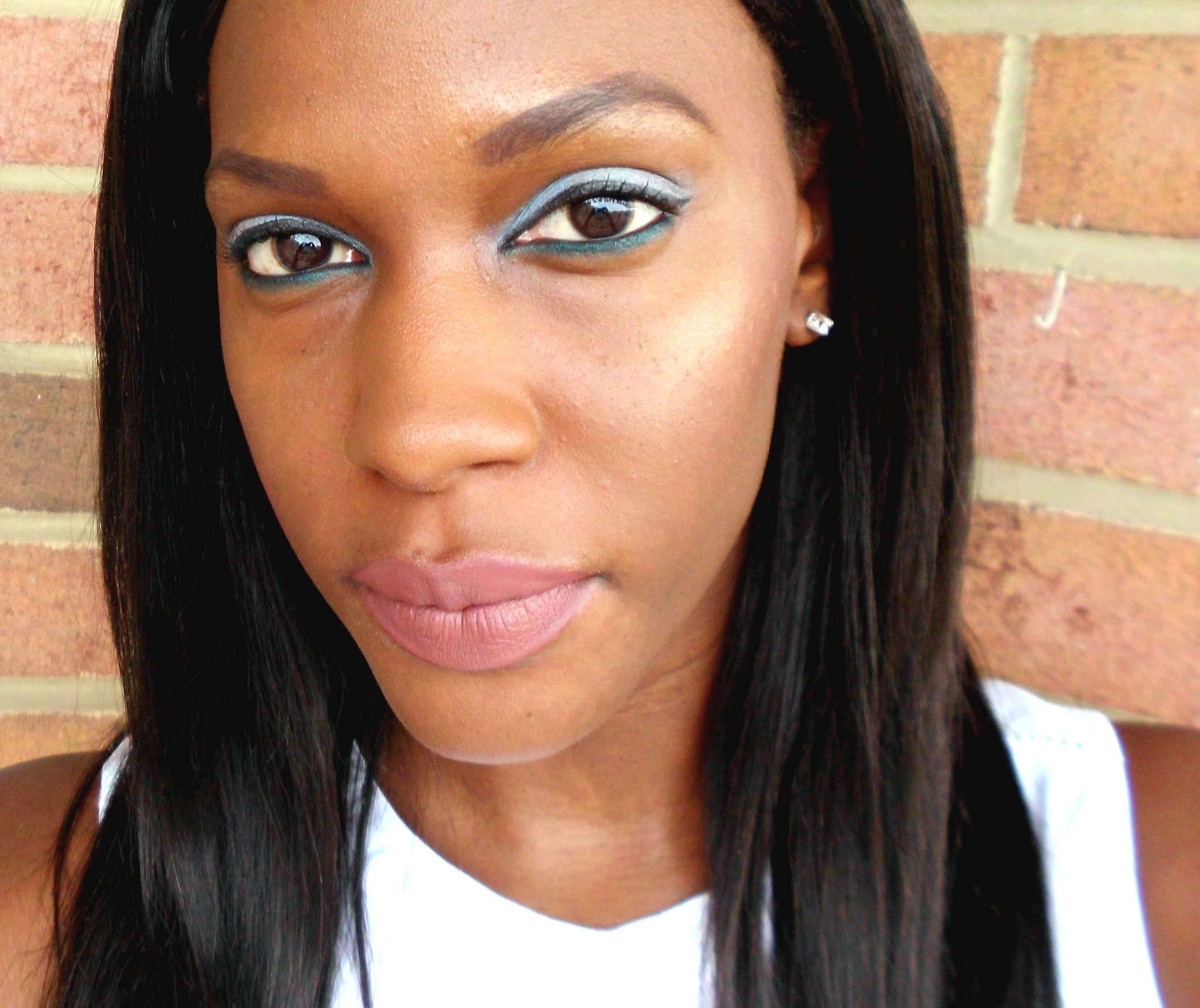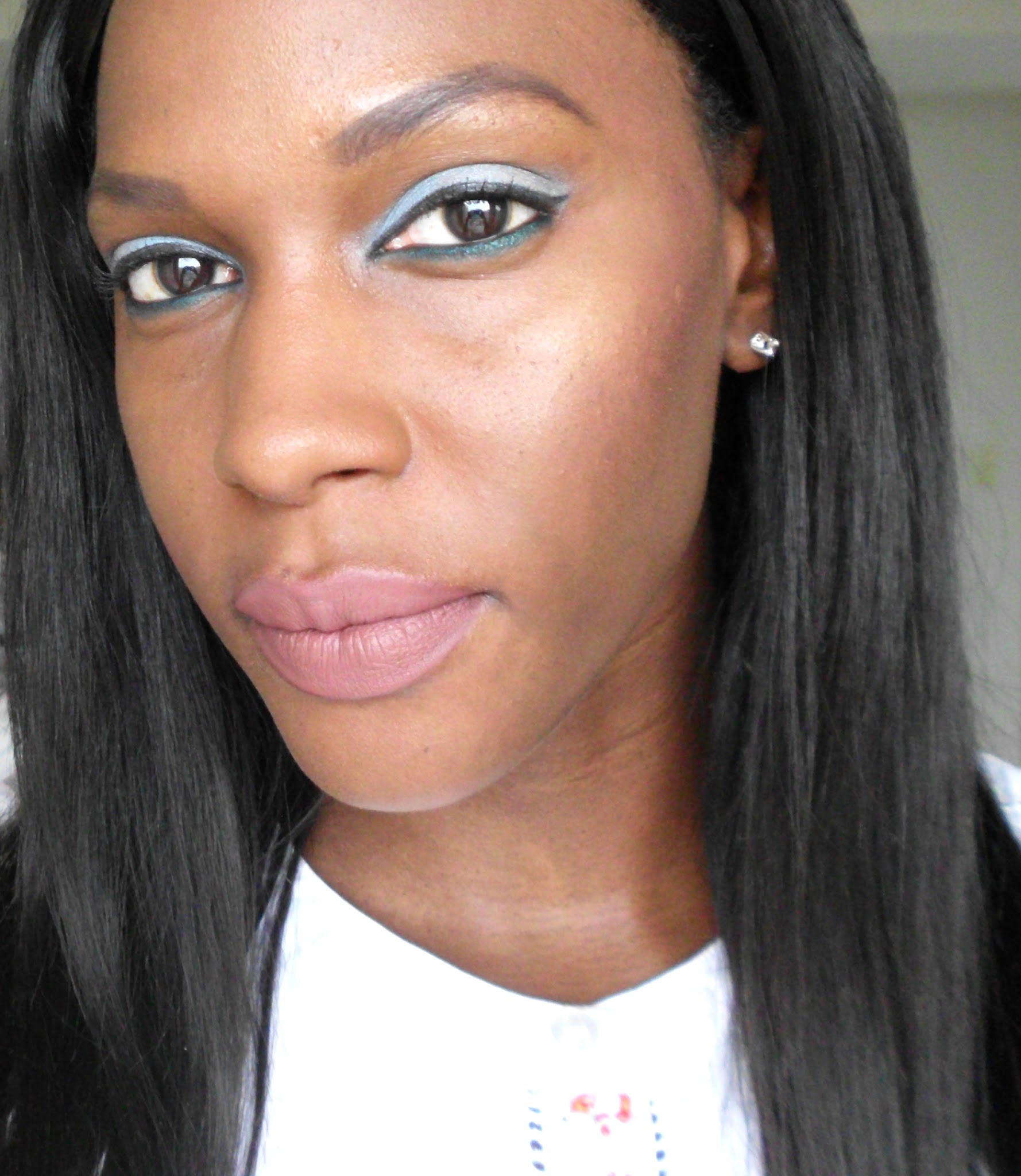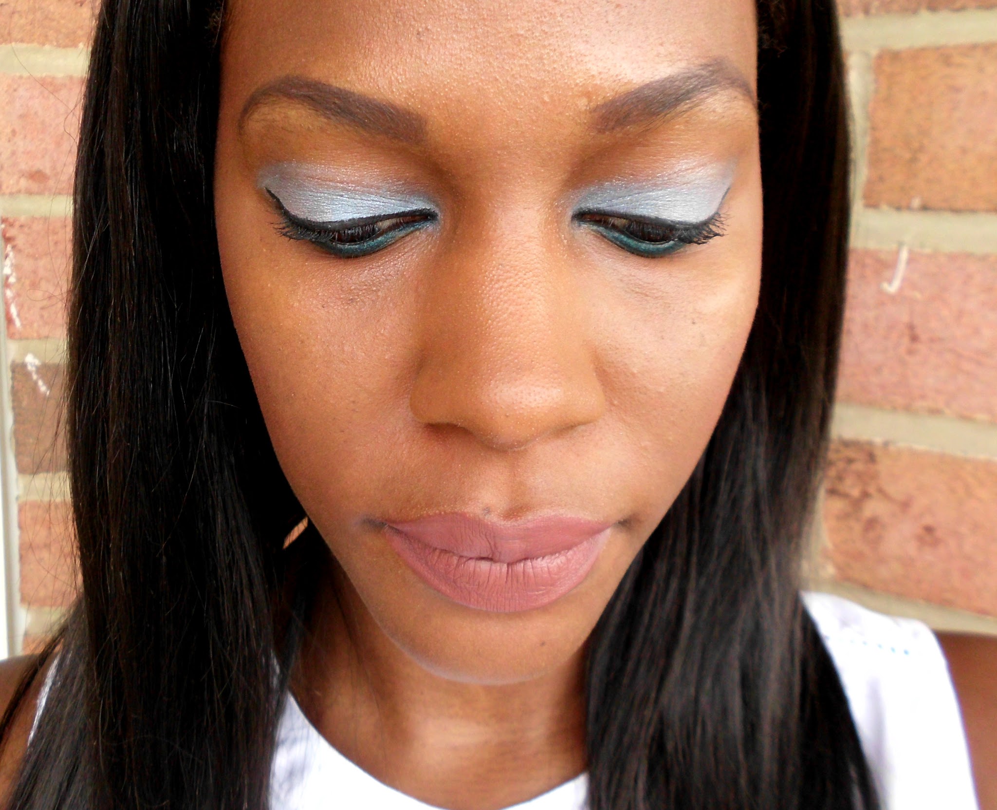 In the photos, it looks like I only used the blue, but I actually used both (the gray on the outer lid). I used the NYX pencil in Milk as a base for longevity. At the end of the day it still creased but it was absolutely beautiful while it lasted.