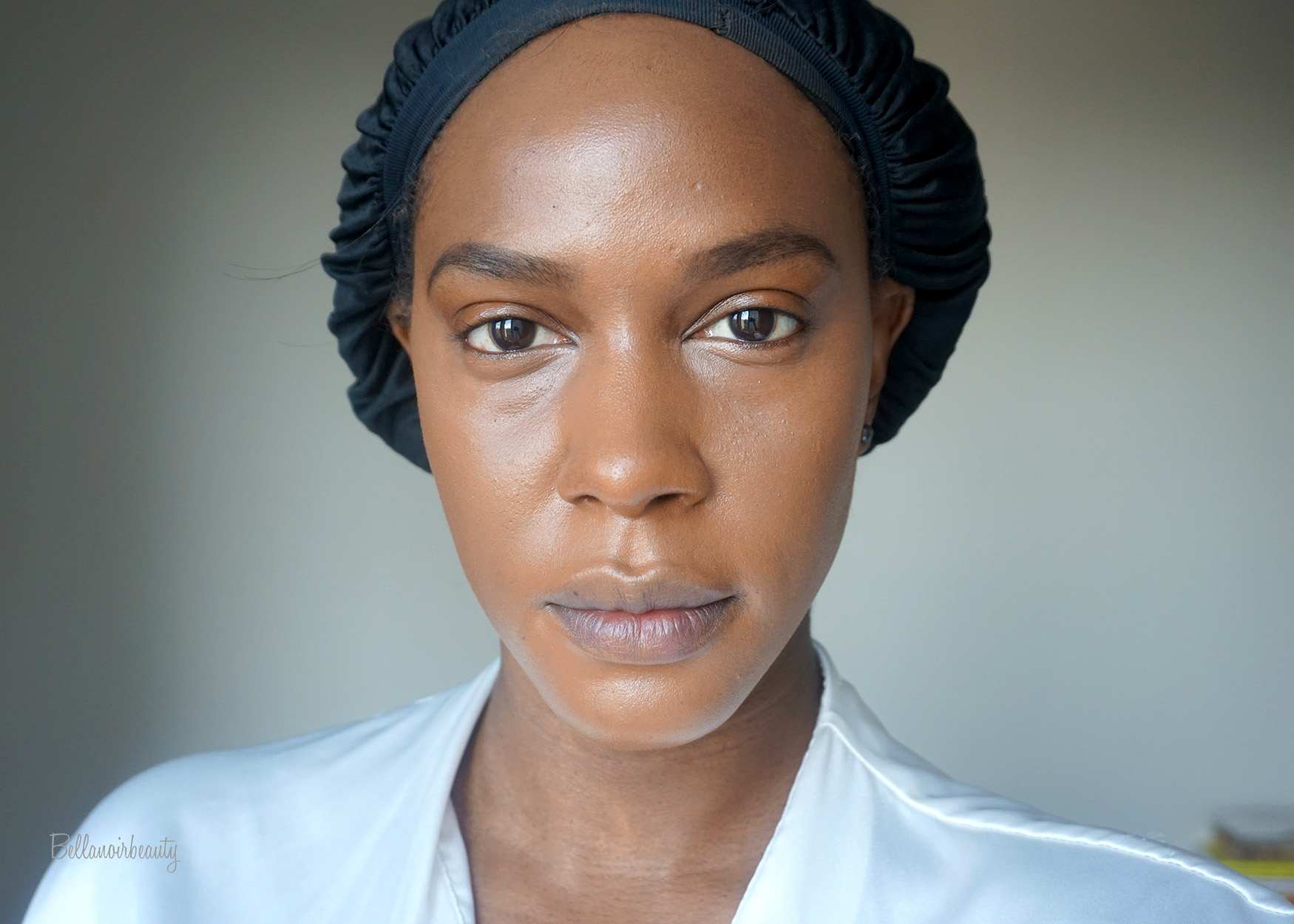 No Filter Foundation in 185, No Filter Concealer, and Banana Powder applied with a damp beauty sponge.