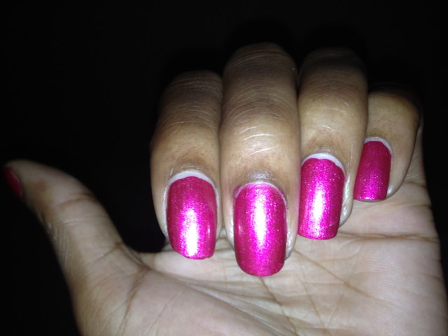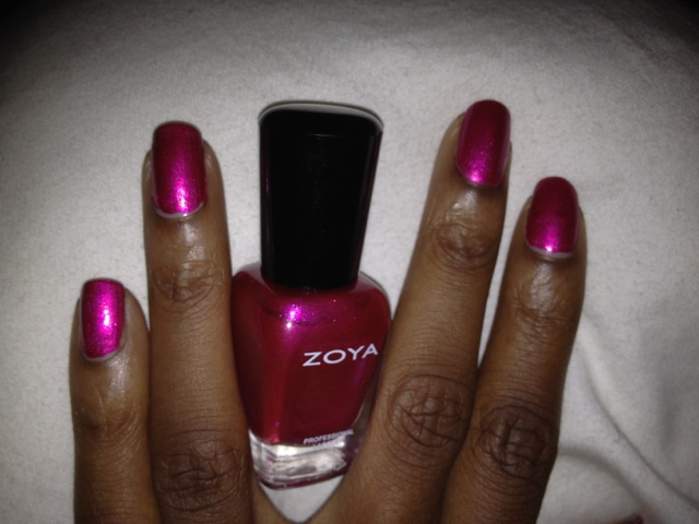This nail polish I received in my Birchbox, Zoya’s Izzy. I would describe it as a metallic pink.